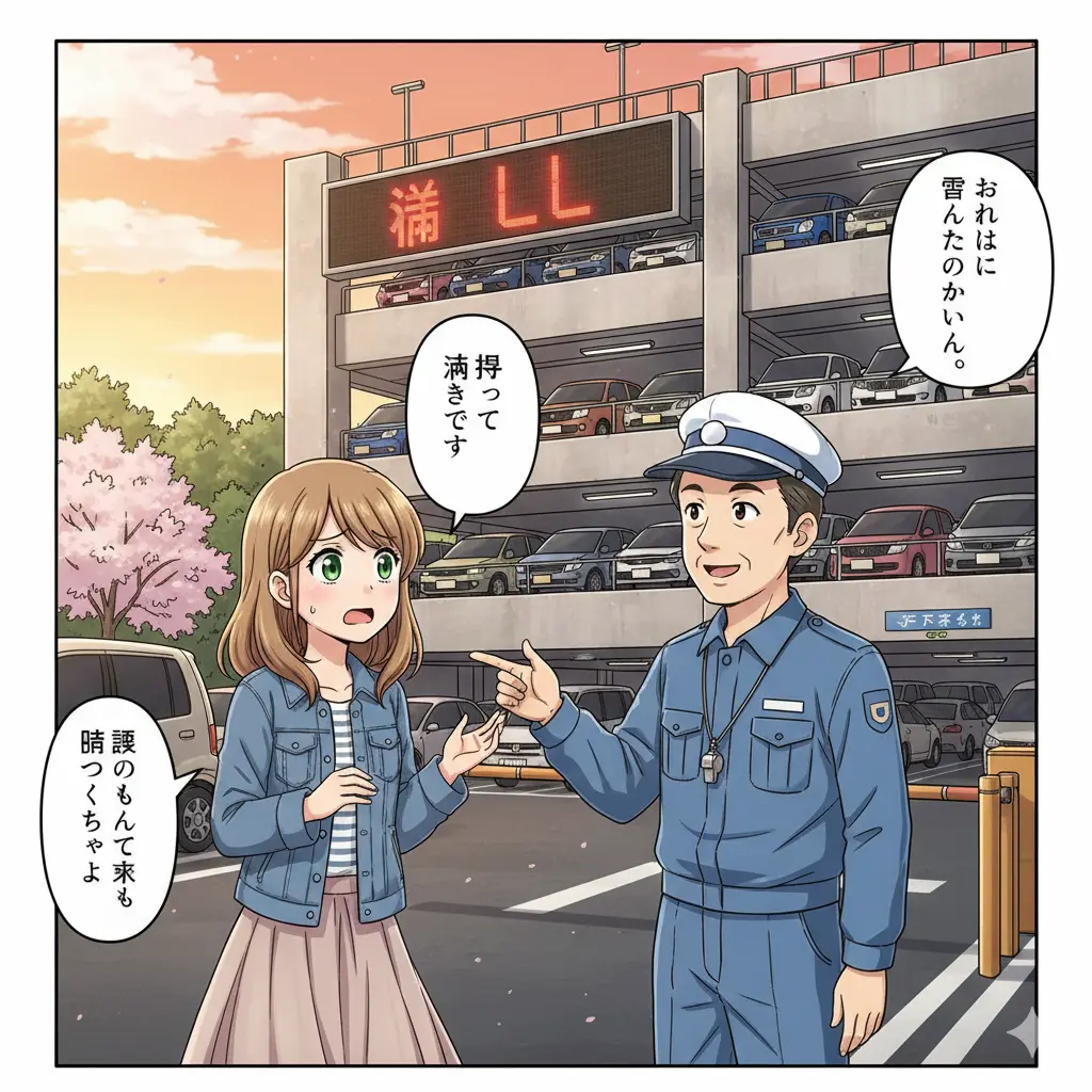 案内係の方に「今日は多いから仕方ないね~。あそこの角の空き地わかるね?」と言われ、