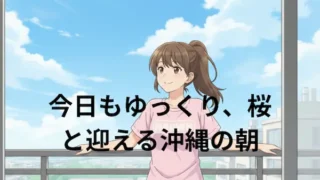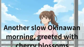 A quiet morning in Okinawa with coffee, light breakfast, and gentle housework. Sakura buds are slowly turning pink, bringing a touch of spring to the day. Later, I plan to go shopping with my mother and brother.